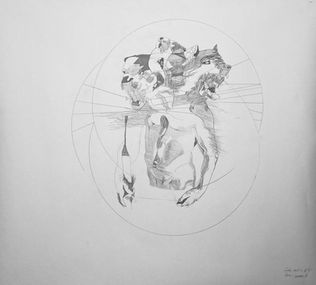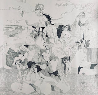 La longue série de « La Divine Comédie » porte clairement la voie de son titre. Toutes assertions propres à l’Homme :la comédie des désirs, les parodies des caractères humains, le drame de l’amour sculpté en cercles successifs, créent la « rencontre manuscrite » pour avoir été ratée… Ce fantasme ultime est transposé par le trait d’un dessin ou la rage d’un pinceau. A partir de longues recherches du livre de Dante Alighieri, naîtra une persistance plastique de l’absence, de la solitude au regard d’une itinérance humaine.